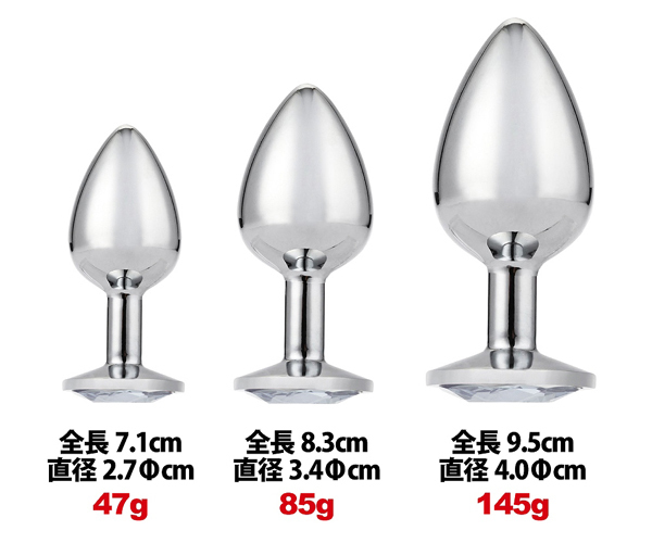![]() スタンダードなデザインのアナルプラグの3個セット!ステンレス製の重量感のあるタイプです♪大・中・小の3種類で、用途や拡張にあわせて選べる3サイズセット。