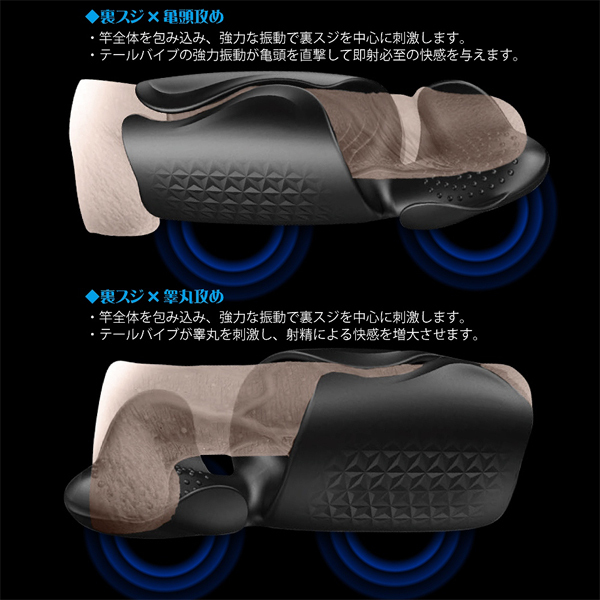 ![]() 上下に内蔵された2つの振動モーターでサオ全体を包み込み強力振動!男を唸らせる究極の電動マッサージャー(USB充電式)。