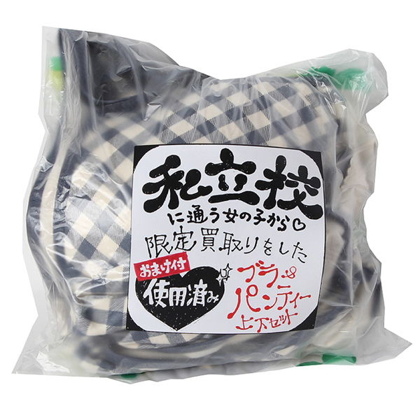 ![]() 女子学生さんから買い取った匂いフェチ興奮のオマケ付き使用済み下着上下セット。