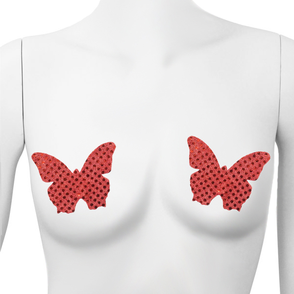 ![]() ラメがキラキラと光る赤い蝶で胸を飾るお洒落なニップレス(赤)。