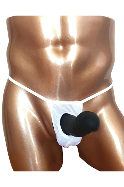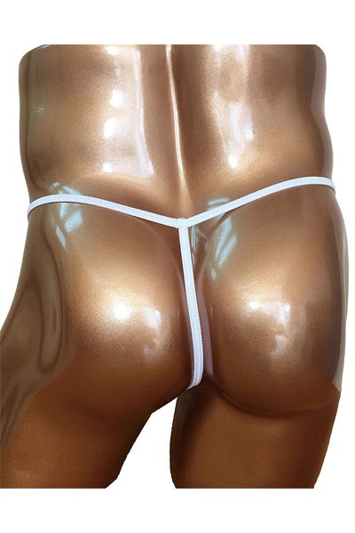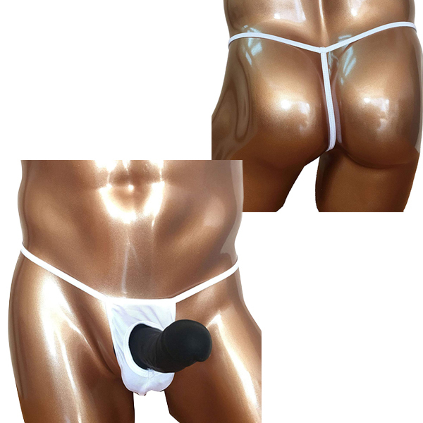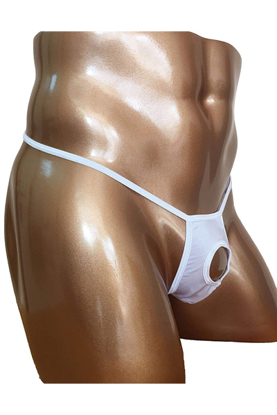 ![]() 露出する開放感!男のシンボルを魅せつける竿出し仕様のメンズ用Tバック(白)。