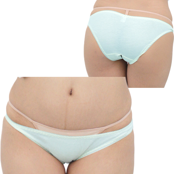 ![]() 肌触り柔らかく伸縮性の高い綿素材を使用したインゴム仕様の日本製フルバック(水色)。