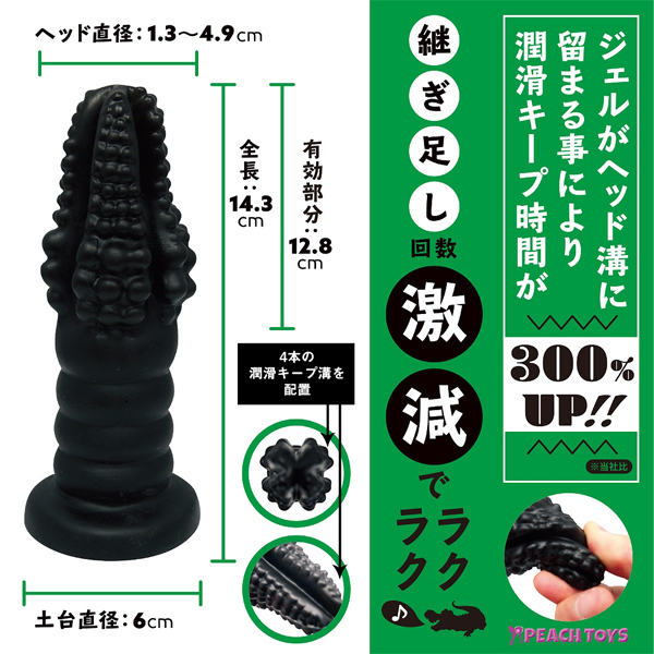 潤滑ローションが溜まる深めの溝を先端に4本配置したことで、乾きにくくした使い勝手の良いディルド!先端から下にいくにつれて大きさが増すワニ型ヘッドは、初心者〜上級者まで満足のいくサイズとなっております。 柔軟性と弾力性のある素材を使用 ![]() ブラック![]() スタンダード![]() パッケージ:24.0×15.0×7.0cm 本体:14.3cm×1.3〜4.9cm![]() [ BACK ]