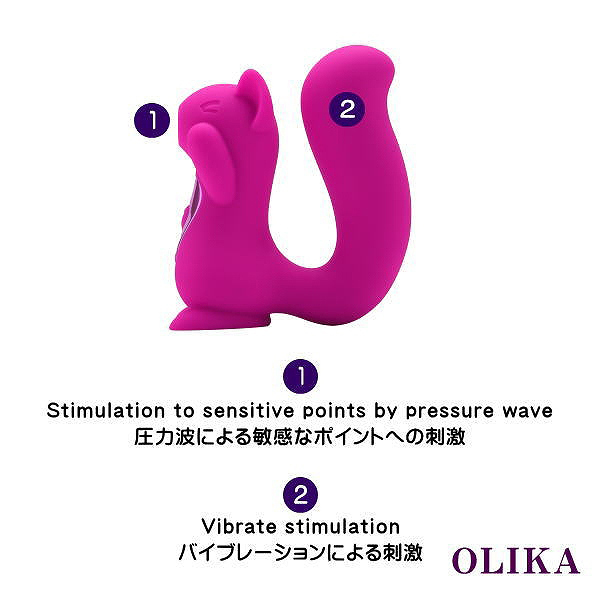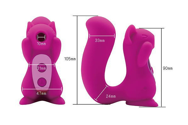コンパクトサイズの可愛らしいリス型の吸引バイブ。 吸引パワーは10段階あるので、優しく吸われるような刺激や強く吸われるような刺激まで幅広くお楽しみいただけます。 シッポ部分にはパワフルなモーターが内蔵されているので挿入バイブとしても使えます。 吸引バイブを楽しみたい時、挿入バイブを楽しみたい時、その時の気分や気持ちで使い分けできるバイブです。 日本語説明書付き。 ![]() --![]() --