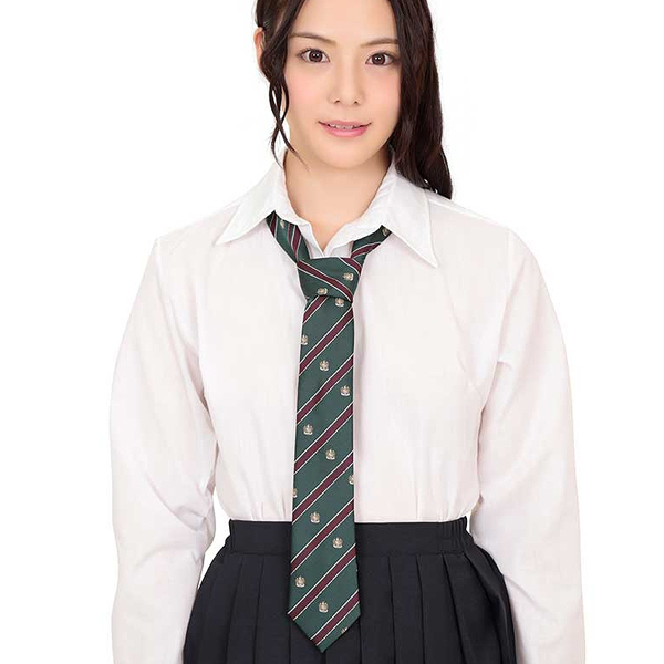 ![]() キュッと締めるだけで知的な印象を与えるストライプ柄のスクールネクタイ単品(緑)。