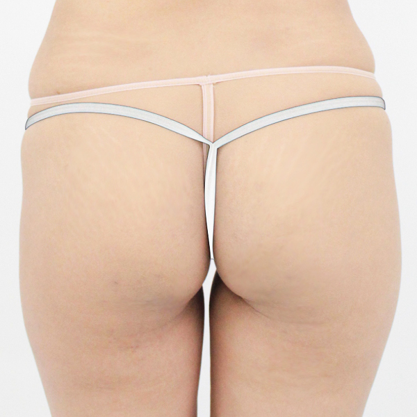 ![]() ゴールドリングで伸縮性のある2wayストレッチ素材の紐をジョイント!極限まで露出した大胆過激な日本製のレディース用Gストリング(白)。