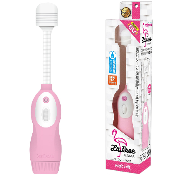 ![]() 柔軟に曲がる長いフレキシブルネックがピンポイントにフィットするピンクカラーの電マ「ラ・フリー」(電池式)。