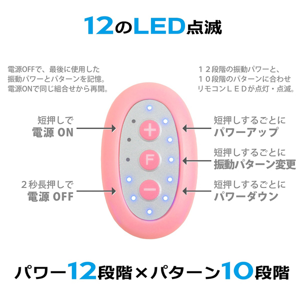 12段階の振動×10種類の振動パターンを搭載!豊富な快感から貴方好みの刺激が必ず見つかる♪10m先の範囲まで遠隔操作可能で、5分で自動的にOFFになる一時停止機能も完備!リモコンには目で見て解りやすいLED×12個も付いています。 完全防水&静音設計 ※リモコンは電池を内蔵 ![]() クロ![]() --