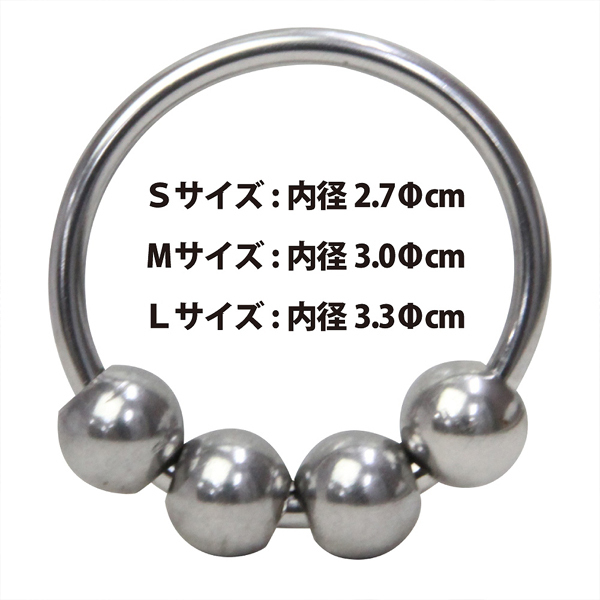 ![]() 可動する4つの金属ボールでパートナーと刺激を分かち合う!スタイリッシュなメタル製のコックリング。