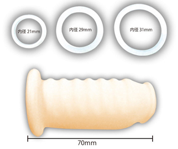 ![]() パッケージ:19.5×12.3×4.0cm 本体:スリーブ全長7.0cm・リング内径(小2.1cm・中2.9cm・大3.1cm)![]() [ BACK ]