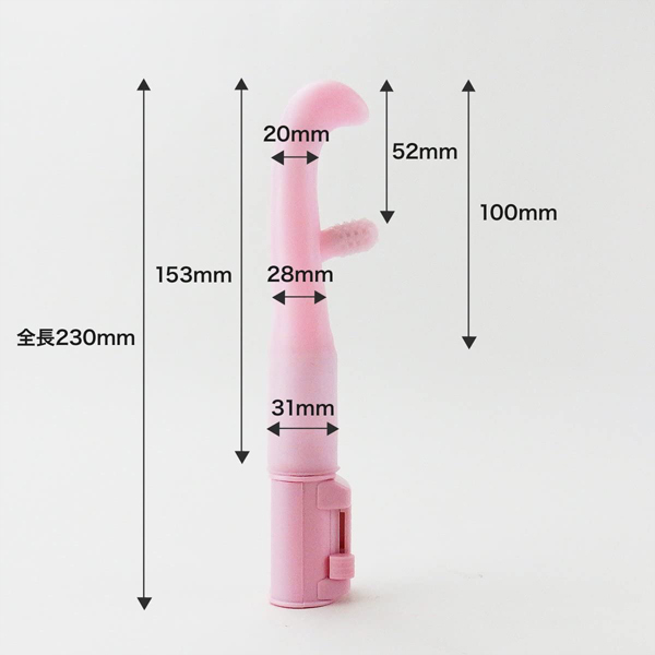 逆L字型の先端が快感部分を刺激しつつ、中腹に突き出たイボ付きの専用突起は挿入時に後ろへ倒れ膣内にフィット、超微細な振動でクリとGスポを刺激する!細めでツルっと挿れやすく、エラストマー素材で柔らかく仕上げた初心者さんでも安心のバイブです。 単四電池を4本使用 ![]() --![]() 膣トレ 潮吹き開発![]() パッケージ:7.0×23.0×3.9cm 本体:23.0×2.2〜2.8cm 電池:単四電池×4本使用![]() [ BACK ]