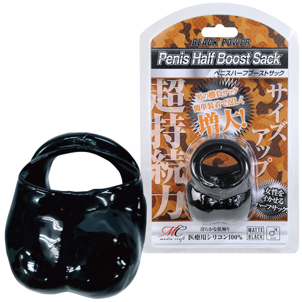 ペニスの根本と玉袋をガッチリとホールドし、ペニスを締め上げることで持続力&サイズアップ効果が期待できる「ペニスハーフブーストサック」です♪伸びる素材だから簡単に装着でき、袋全体を締め上げることで射精感と快感もアップ!女性をイカせるハーフサックといえば、これをおいて他にはないでしょう。 ![]() --![]() --