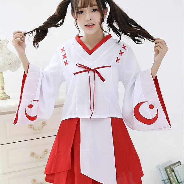 ![]() アニメ風の個性的なデザインが特徴的な巫女服衣装。