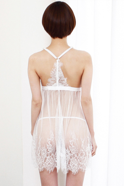 ![]() シアー素材でエレガントに仕上げた純白ベビードール&Tバック。