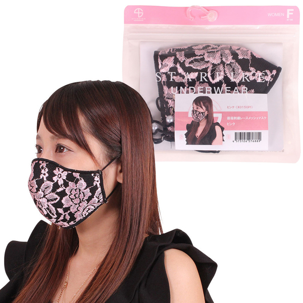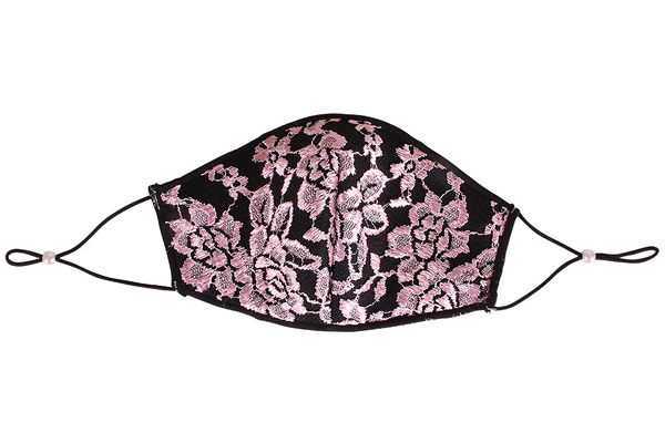 ![]() 黒地にピンクの薔薇刺繍が可愛い柔らかな大人用レースメッシュマスク。