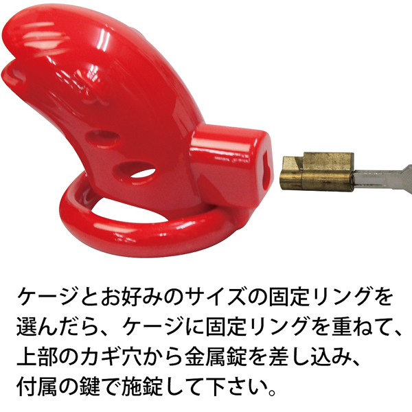 ![]() 2つのパーツで簡単装着できる機能性に優れたプラスチック製の鍵付き男性用貞操帯。