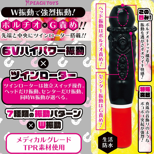 ![]() とにかくヤバイ「YAVIBE!」4弾目は、幅5.5cmの超極太な凹凸突起&ポルチオキャッチ構造の黒光りボディでとことん責める!先端と中央から発する6Vの強烈振動が奥とGスポを同時に刺激。