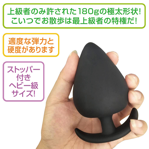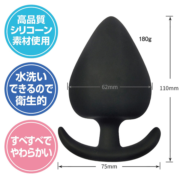 ![]() 全長11cm、最大幅6.2cm!お尻の中を圧迫刺激する超特大180g仕様のストッパー付きプラグ。