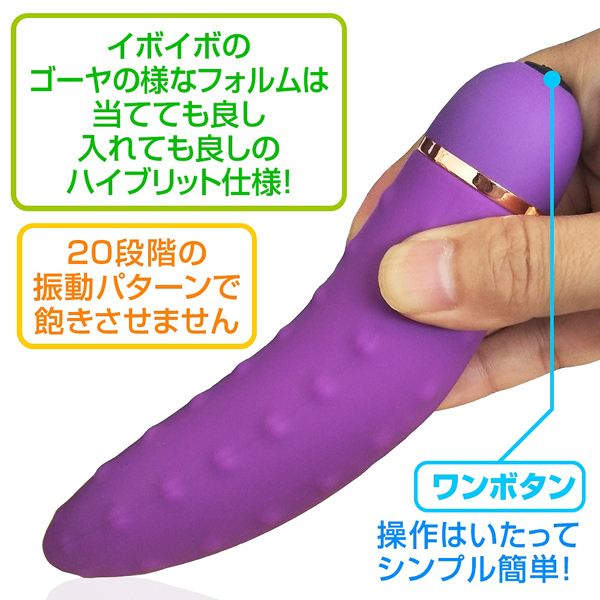 ![]() 20種類の豊富なアクションを搭載!粒々突起を無数に配置したゴーヤ形状の電池式バイブ。