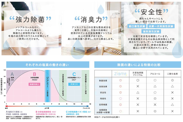 ![]() 水道水に混ぜて溶かすだけ!いつでも新鮮な次亜塩素酸が作れる顆粒タイプの除菌&消臭液「ジアミー」。