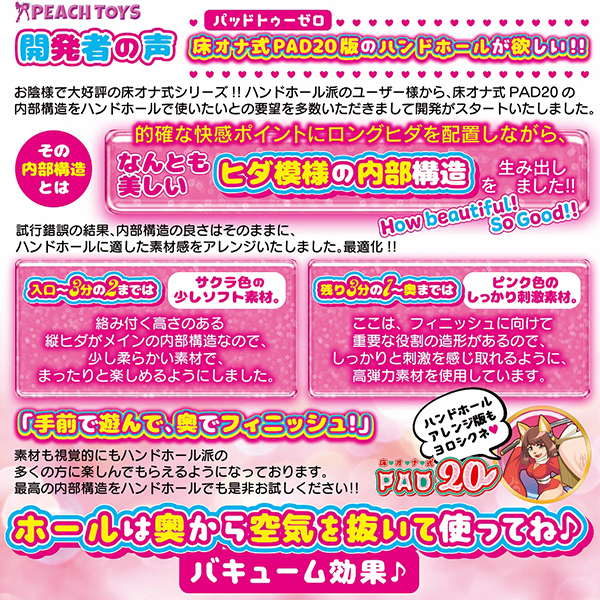 ![]() 床オナ式シリーズ最新作は手前で感じて奥でイクッ!前作「床オナ式PAD20(b30357)」のハンディサイズが欲しいという声から生まれた肉厚550gの非貫通オナホ。