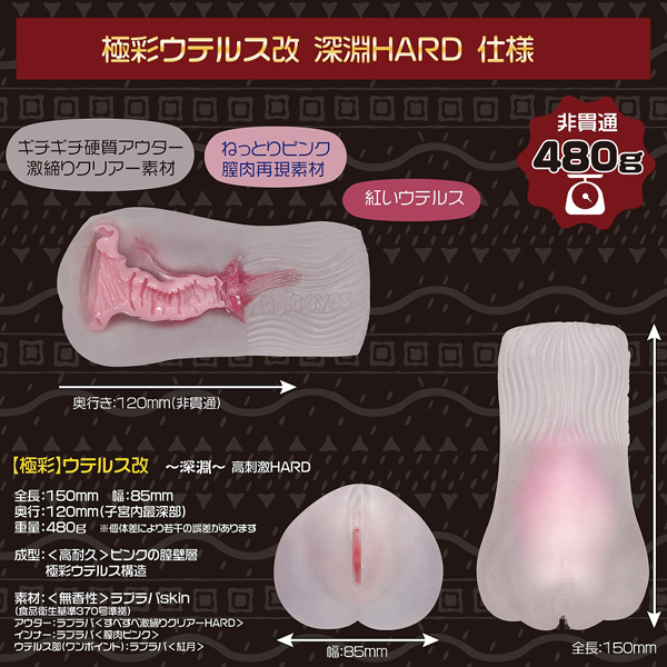 はっきりとした使用感の為、深堀溝に改良し子宮口も侵入しやすく逸れにくい形状に改良。 ウテルス内は超絶バキュームで搾り取られます。 厚労省:食品衛生法第370号準拠素材を採用した「ラブラバSkin」を使用しております。 ●ローション付 ![]() --![]() 深淵高刺激HARD![]() パッケージ:22.0×14.0×7.7cm 本体:15.0×8.5cm・内部長12.0cm 重量:480g![]() [ BACK ]