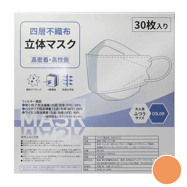 HOME > 特殊アイテム > 特選 > 四層不織布立体マスク 30枚入り (アプリコット)