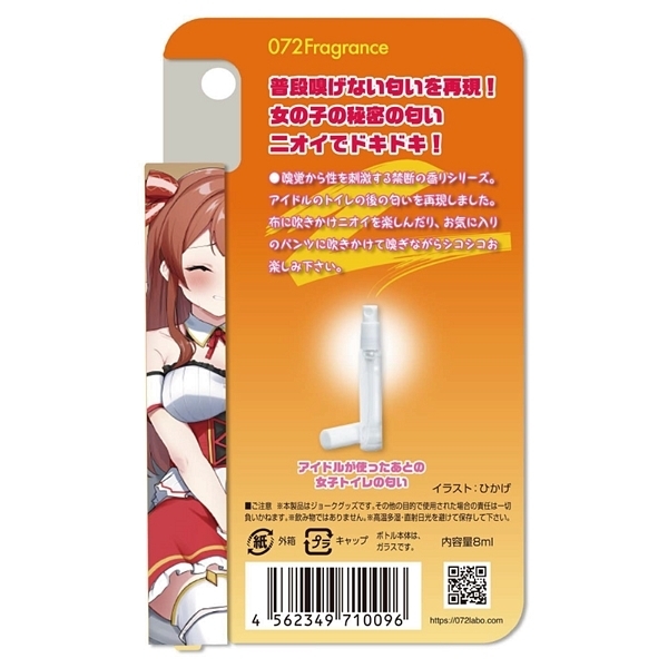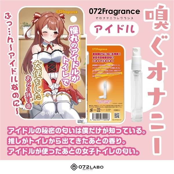 ![]() 普段は決して嗅ぐ事のできない秘密のフェチな香りを再現!嗅覚から性を刺激する禁断の香りシリーズから、アイドルのトイレの後の匂いを再現したグッズが登場しました♪布に吹きかけニオイを楽しんだり、お気に入りのパンツに吹きかけて嗅ぎながらシコシコ楽しもう!嗅ぐオナニーであなたの性活を応援します♪