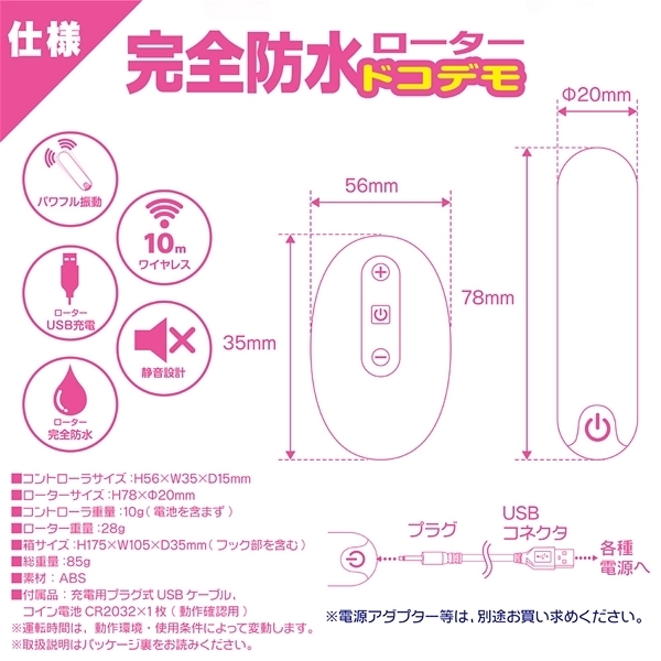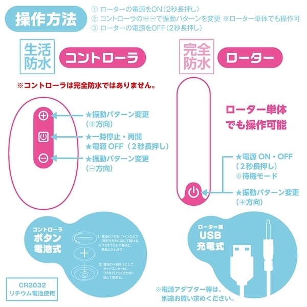 振動機能はリモコン式でボタン電池CR2032が1枚(動作確認用)付属。 ![]() ピンク![]() --