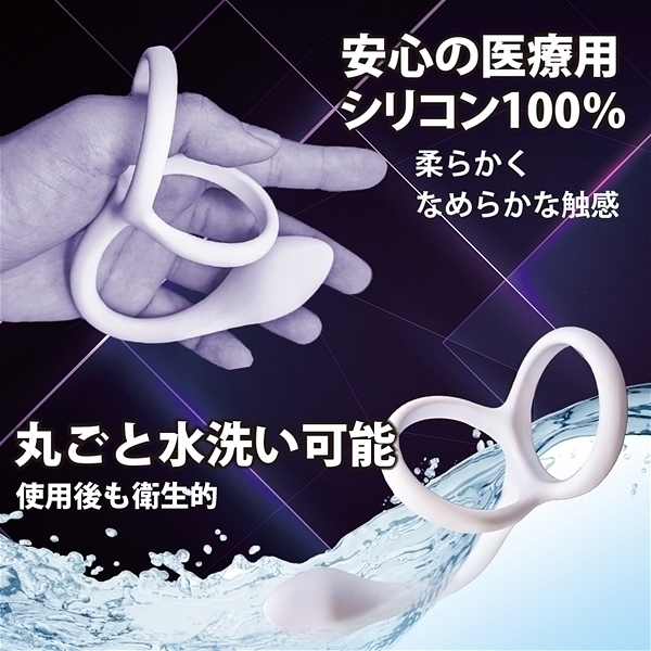 ![]() 前立腺刺激と会陰部の圧迫、ペニスの締め付けで射精感UP!根本と玉袋の2つを締め付け射精感UP!根本、睾丸、前立腺の3か所を同時に刺激!100%医療用シリコン素材。