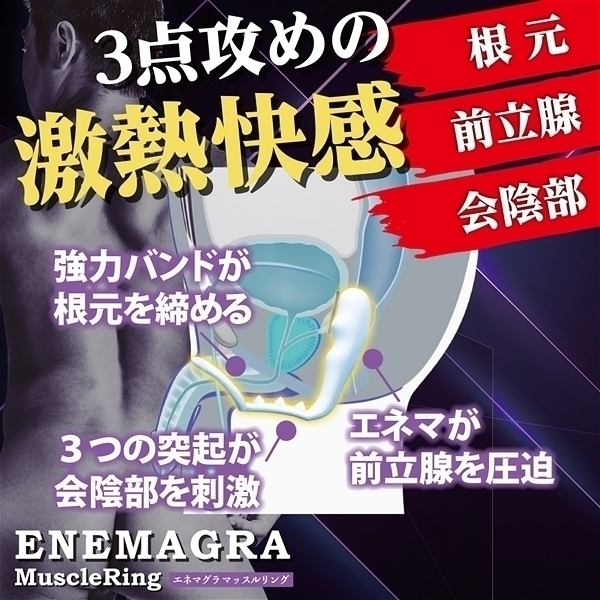 ![]() 前立腺刺激と会陰部の圧迫、ペニスの締め付けで射精感UP!3つの突起が会陰部を重点的に刺激し、射精感を更にUP!根本、会陰部、前立腺の3か所を同時に刺激!100%医療用シリコン素材。