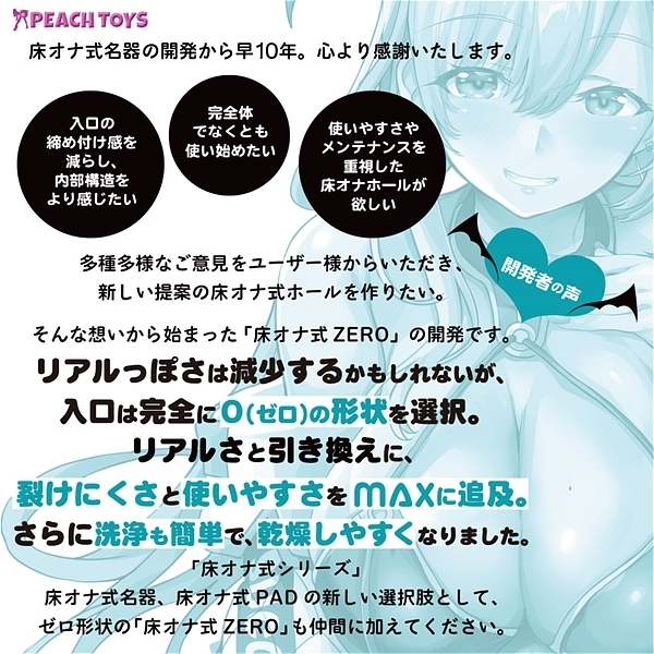 ![]() 床オナ式シリーズ!10周年!「床オナ式ZEROサキュバスGAL」が新登場!「床オナ式ZERO(ゼロ)」とは…入り口がゼロ形状!入れにくいイライラゼロ!使用中入り口のコリコリした締め付け感ゼロ!材は、<STD(スタンダード>と<HARD(ハード)>の同時発売!!<ハード>版は、体重90kgの男性が体重を掛けて乗っても大丈夫な高弾力素材を採用!HARDな使用感!魔性の清純スケベ系ハードサキュバス!どんな状態でもHARDに吸い取っちゃうわよ。