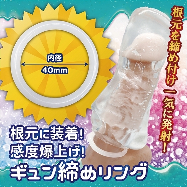 ![]() とろけるゼリーのようなホールと、ギュッと締めるリングの快感満点セット!とろけるやわもちホールと感度爆上げのギュン締めリング、さらにたっぷり楽しめるローションが付属。