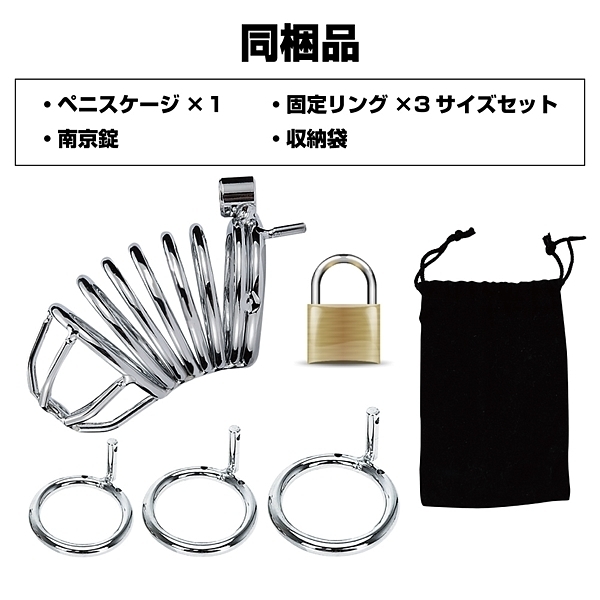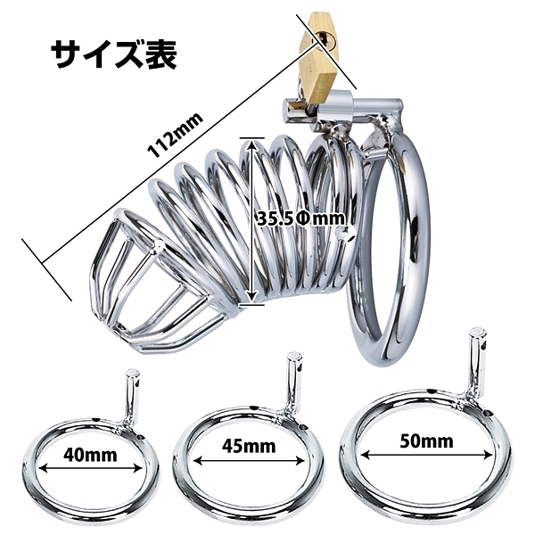 日常的につけ射精管理を行えます。 付けたまま排泄も可能です。 ![]() --![]() 抑制(よくせい)![]() パッケージ:28.0×18.5cm 本体:ペニスゲージ11.2×3.5cm・固定リング小(内径4.0cm)・固定リング中(内径4.5cm)・固定リング大(内径5.0cm) セット内容:ペニスゲージ、固定リング3サイズセット、南京錠、収納袋 ![]() [ BACK ]