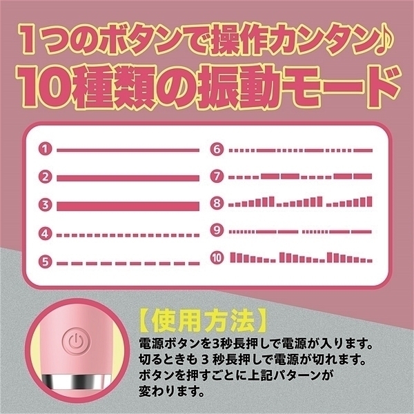 1分間で超高速10000RPMの超振動でありながら静音性にも優れています。 フル充電から約60分の連続使用も可能です。 生活防水設計の為、使用後は丸洗いも可能なため清潔にご使用いただけます。 ●カラー:ピンク ![]() ピンク![]() --