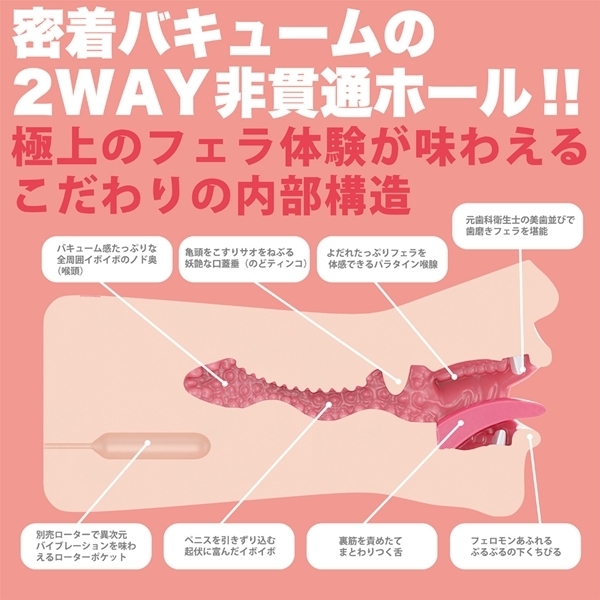 ●内部構造・フェロモンあふれるぷるぷるの下くちびる・元歯科衛生士の美歯並びで歯磨きフェラを堪能・裏筋を責めたてまとわりつく舌・よだれたっぷりフェラを体感できるパラタイン喉腺 ![]() --![]() 橘メアリー 手動![]() 非貫通型 パッケージ:19.0×10.5×10.5cm 本体:19.0×8.8cm(顔部分)![]() [ BACK ]