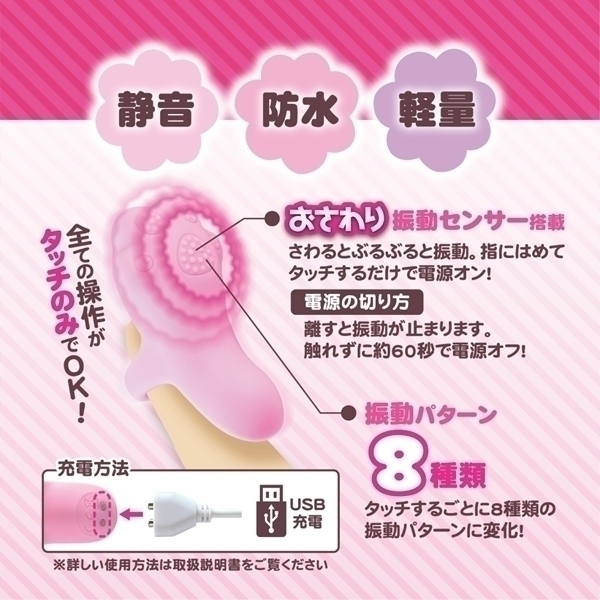 ![]() 触れるだけで動き出す新感覚のタッチセンサー搭載アイテムです!全ての操作がタッチのみで完結するので、簡単で直感的な操作が可能♪指にはめて触れると振動がスタートし、触れるたびに振動パターンが変化します!離すと自動で停止し、触れずに約60秒経過すると電源がオフになる省エネ設計♪本体は33.5gの超軽量設計で、持ちやすく疲れにくい仕様!高品質なシリコンボディを採用し、防水性能と静音性も兼ね備えています♪使いやすさと機能性を両立したハイスペックな一品!日常のリラックスタイムや特別なひとときにぴったりのアイテムです♪
