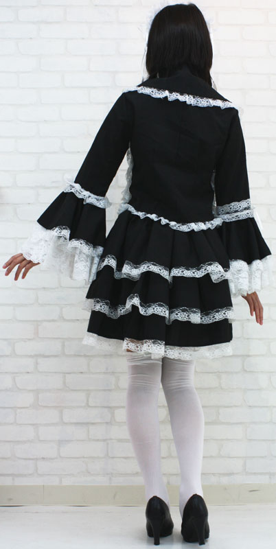 大きめキュートな衿は、取り外しが可能!ゴスロリ好きのあなたも目が離せないコスプレ衣装です。 ※水洗い不可、塩素系漂白剤による漂白不可、アイロンは中温で当て布使用、ドライクリーニング可、色落ちの可能性があります。 ※こちらの商品は在庫の状況によりお届けまでに4日〜7日程度かかる場合がございます。 ![]() ブラック![]() NH1002M![]() Mサイズ:B76〜82cm・W64〜100ccm 丈:上着48cm(袖62cm・肩幅37cm)・スカート47cm セット内容:ジャケット(前ボタン留め、姫袖)・別衿・ヘッドドレス(総レース仕様、バラのコサージュ付き)・スカート(ウェストゴム入り) ![]() [ BACK ]