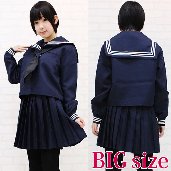 スタンダードなデザインの紺一色の上下に、スカーフもセット!一式揃ったセーラー服のコスプレ衣装です。 襟と袖口には三本ライン、胸元には刺繍入り。 ※水洗い不可、塩素系漂白剤による漂白不可、アイロンは中温で当て布使用、ドライクリーニング可、色落ちの可能性があります。 ※こちらの商品は在庫の状況によりお届けまでに4日〜7日程度かかる場合がございます。 ![]() --![]() SS3008B![]() BIGサイズ:B90〜112cm・W70〜86cm 丈:上着56cm(袖丈60cm)・スカート46cm セット内容:上着(前ファスナー)・スカート(横ファスナー、アジャスター有り)・スカーフ ![]() [ BACK ]