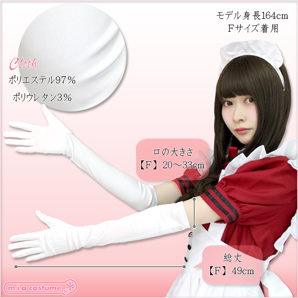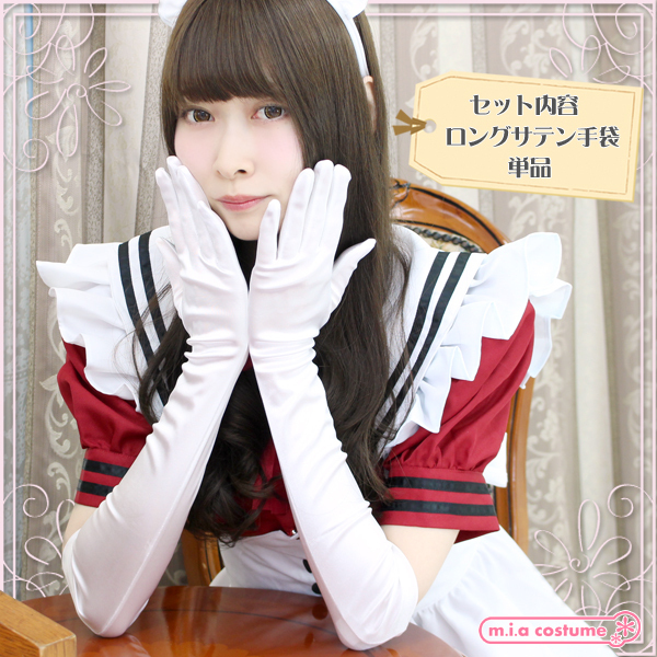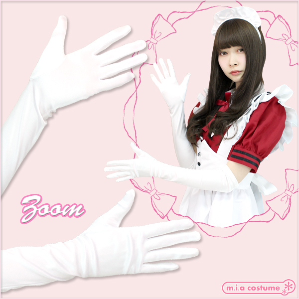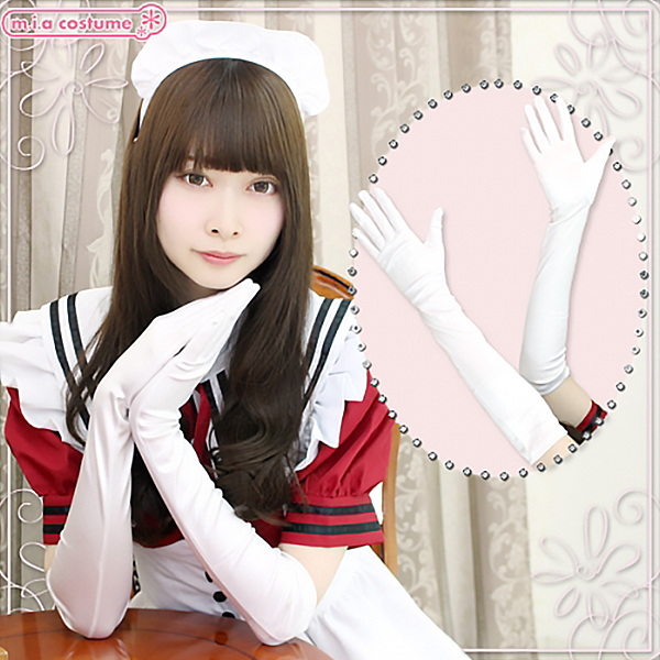 ![]() プリンセスドレス、メイド服、チャイナドレスなどのコスプレやワンピースにも合わせられるロング手袋(白)。