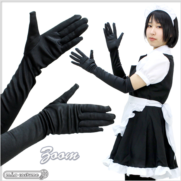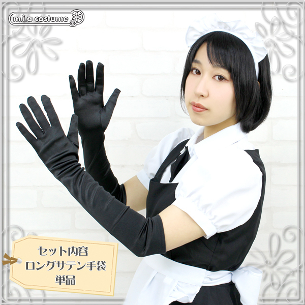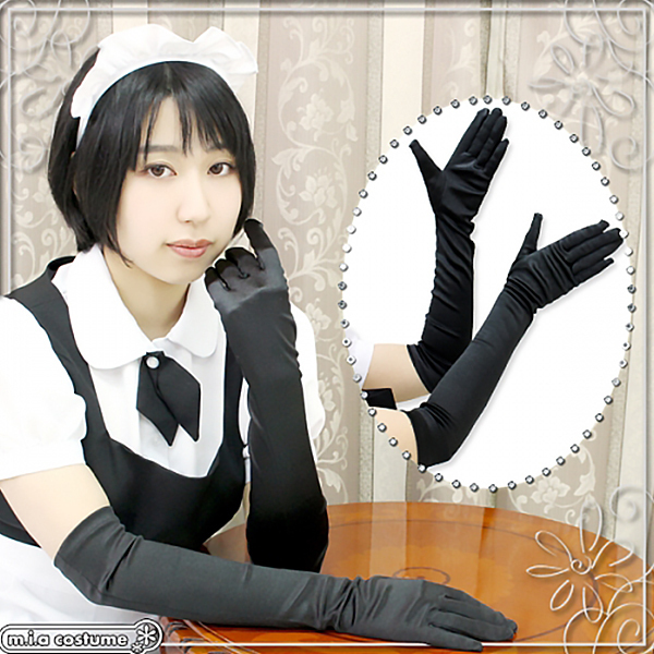 ![]() プリンセスドレス、メイド服、チャイナドレスなどのコスプレやワンピースにも合わせられるロング手袋(黒)。