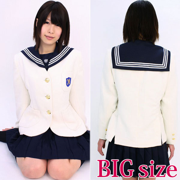 クリーム色のジャケットに、青いエンブレム&金ボタンが映えてとっても上品!セーラー服コスチュームと合わせて、アナタもお嬢様に変身。 ※水洗い不可、塩素系漂白剤による漂白不可、アイロンは中温で当て布使用、ドライクリーニング可 ※こちらの商品は在庫の状況によりお届けまでに4日〜7日程度かかる場合がございます。 ![]() --![]() NK3019B![]() BIGサイズ:B90〜115cm・W〜104cm 丈:ジャケット68cm(袖丈61cm、肩幅47cm) セット内容:ジャケットのみ(前釦、肩パット入り、裏地付き) ![]() [ BACK ]