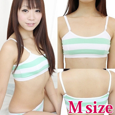![]() 楽チン!かわいい!グリーン×ホワイトのしましま柄スポーツブラ(M)。