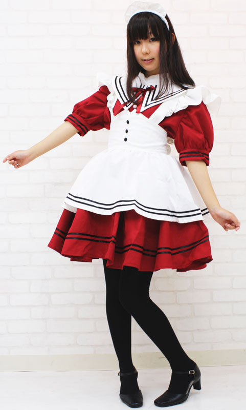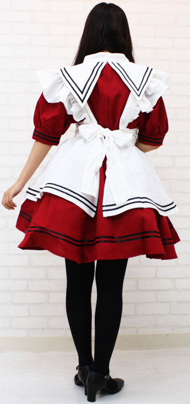 ![]() セーラー服を彷彿とさせるエリ付きのメイドコスチューム(エンジ)。