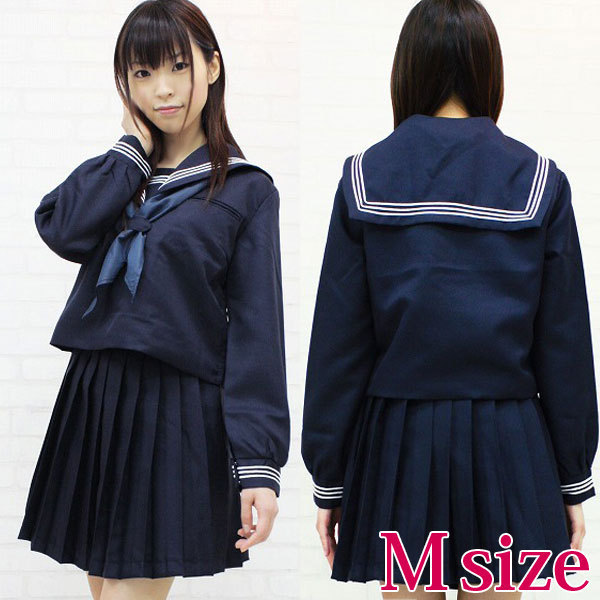 ![]() 制服コスプレの定番!ネイビーカラーの長袖セーラー服。