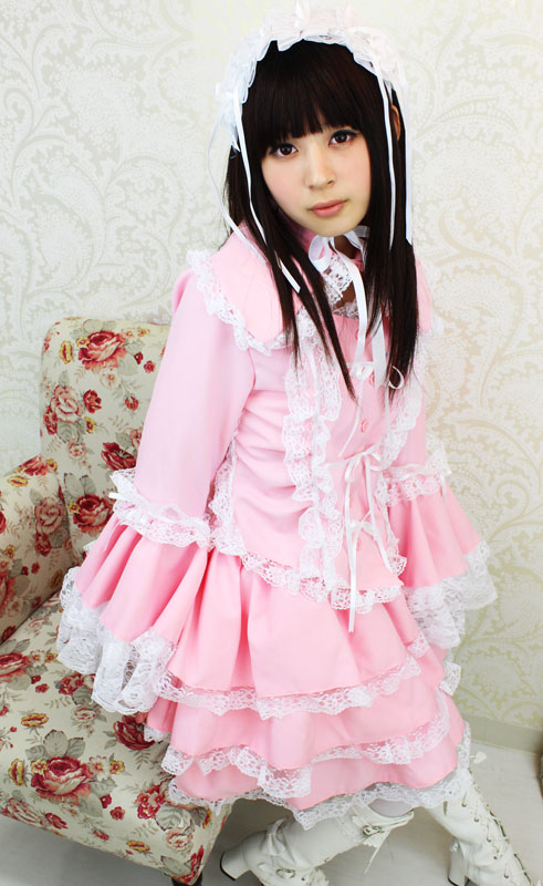 ![]() たっぷりのフリフリレースでボリューム感を持たせた、ピンクのチュールメイド服(BIG)。