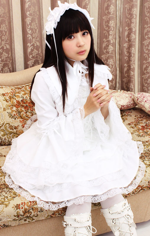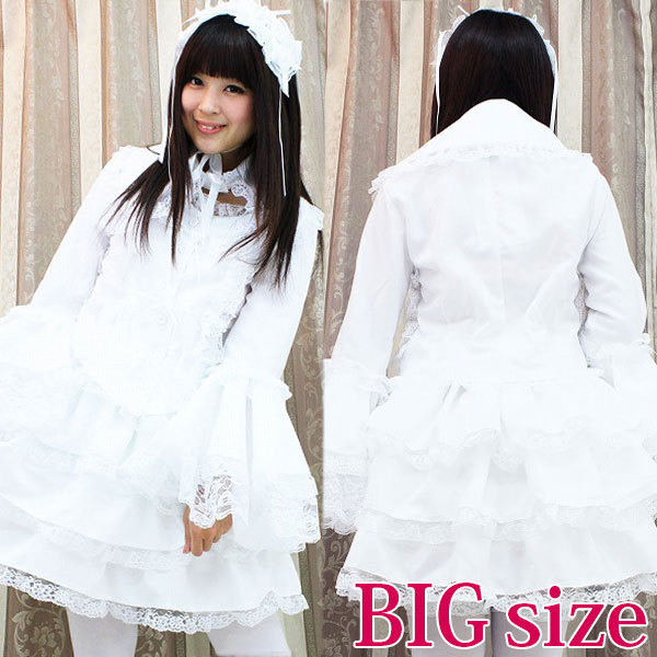 ![]() たっぷりのフリフリレースでボリューム感を持たせた、真っ白なチュールメイド服(BIG)。