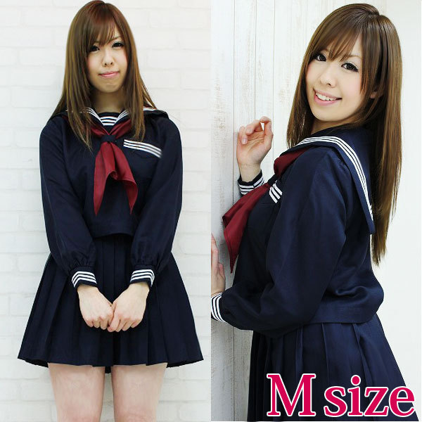 ![]() コスプレ衣装の王道!シンプルなのにとっても可愛い紺色の長袖セーラー服。