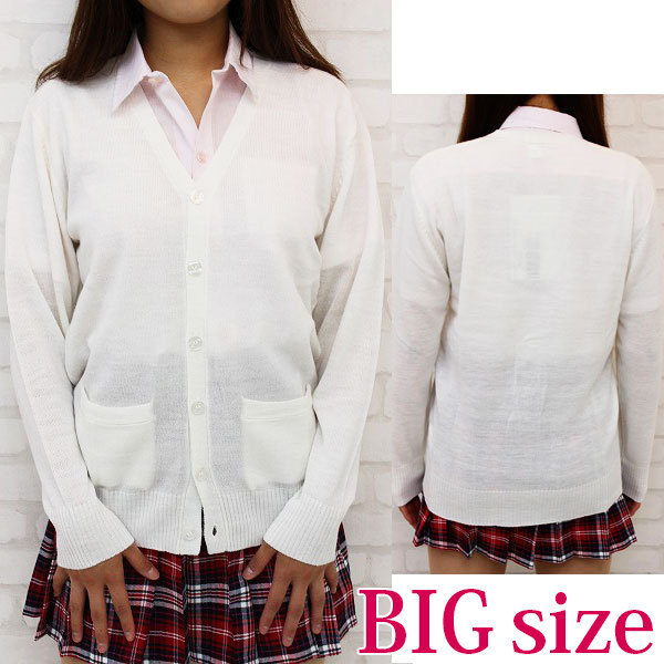 制服コスプレだけでなく「ちょっとそこまで」の外出時にも、上に羽織ればオシャレ度UP!寒い季節には手放せない必須アイテムです。 こちらは大きめのBIGサイズでございます。 ※水洗い不可、塩素系漂白剤による漂白不可、アイロンは中温で当て布使用、ドライクリーニング可、色落ちの可能性があります。 ※こちらの商品は在庫の状況によりお届けまでに4日〜7日程度かかる場合がございます。 ![]() ホワイト![]() AO3018B![]() BIGサイズ:B90〜100cm 着丈:65cm(袖丈62cm、肩幅:46cm) セット内容:ニットカーディガン単品(前ボタン) ![]() [ BACK ]