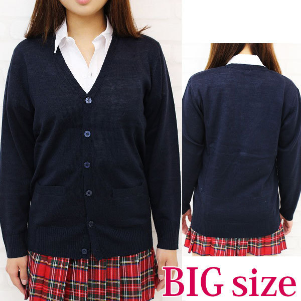 ![]() ネイビーカラーの「ニットカーディガン」は学生服や私服、コスプレにも合わせやすい!「学生気分をもう一度味わいたい…」そう思っている方は、制服コスプレと一緒に着てみてはいかがでしょうか?こちらは大きめのBIGサイズでございます。